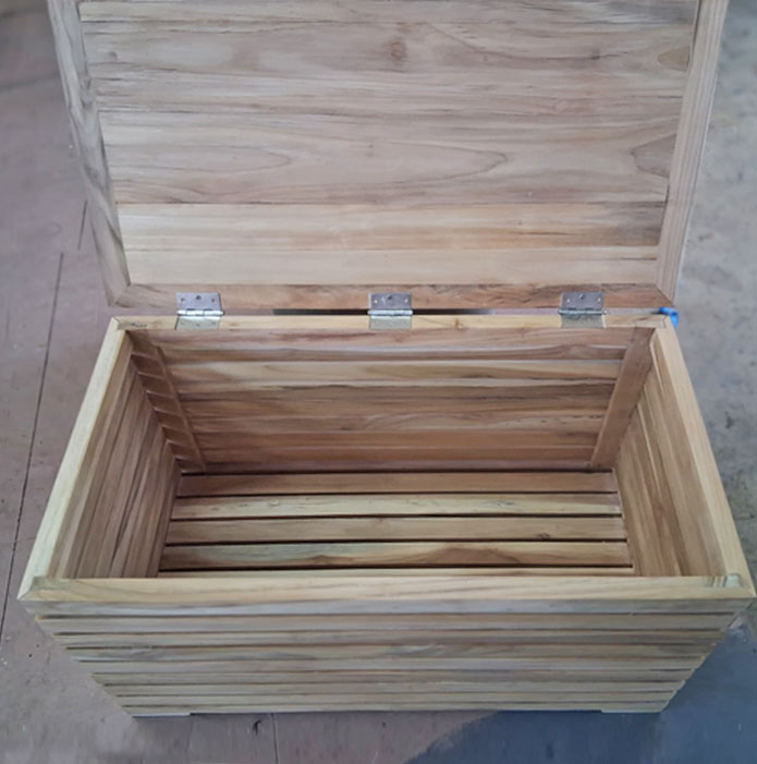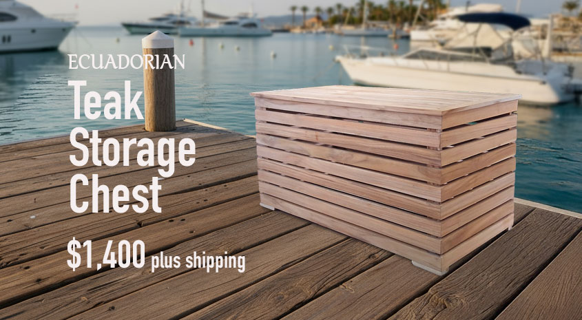 Transform your outdoor space with our generously sized teak wood storage chest, handcrafted from premium Ecuadorian teak. Designed with both simplicity and durability in mind, this sophisticated chest enhances the beauty and functionality of docks, poolsides, patios, and gardens alike. Its natural teak finish not only offers timeless style but also withstands the elements, ensuring lasting appeal and resilience. The spacious interior provides ample room for yachting and outdoor essentials. Versatile by design, this chest seamlessly doubles as a comfortable extra seat or a practical table for outdoor gatherings. For those seeking a refined and multi-functional solution, this teakwood storage chest delivers natural beauty and practicality, making it an indispensable addition to any outdoor setting.
