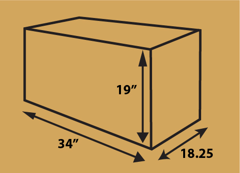 Specs: 34″ L x 18.25″ W x 19″ H.